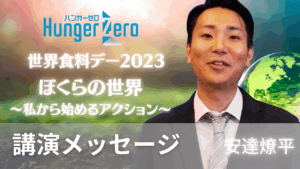 2023年の世界食料デーの開催テーマは「Hunger Zeroぼくらの世界」。この世界の厳しい現状から目をそらすことなく、飢餓・貧困問題の解決に一人一人が行動を始めていくことを願っている。