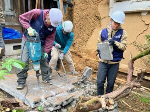 近藤高史氏(ハンガーゼロ総主事)は、「ハンガーゼロの働きは、能登では自分たちが独自でするのでなく、現地の働きに協力し、能登指定でいただいた募金を支援援助で用いていくこと」だとし、「今は、LOVE EAST(執行責任者・天野真信)が行っている、電動カッターでブロック塀を壊し撤去する働きに協力させていただいている」と言う。「危険も伴うので、素人の私たちが行って、独自にできることではない。この働きに、私たちが派遣するボランティアがお手伝いするという状況。ハードだが、本当に現地の人たちに喜ばれている働きで、大変、感銘を受けている」