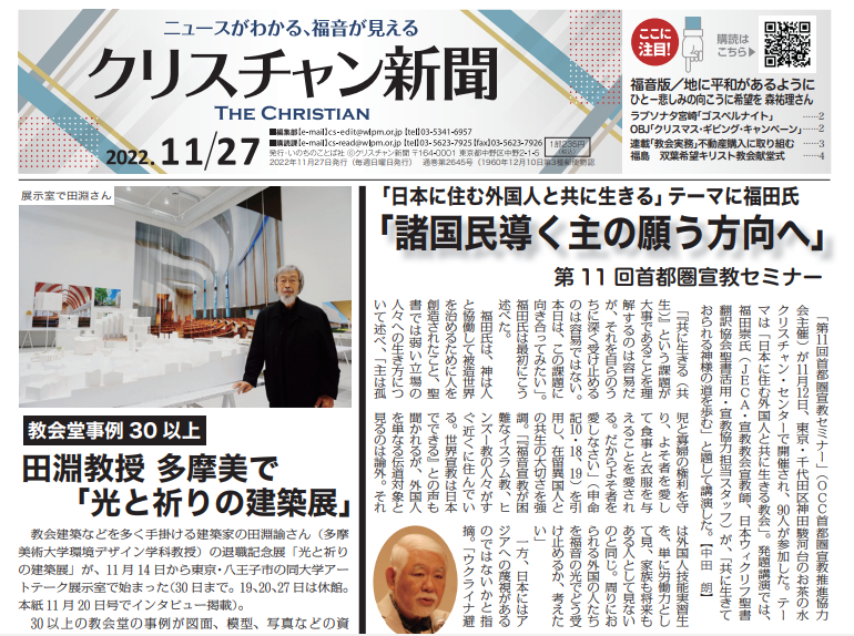 ☆教会堂事例30以上 田淵教授 多摩美で 「光と祈りの建築展」
