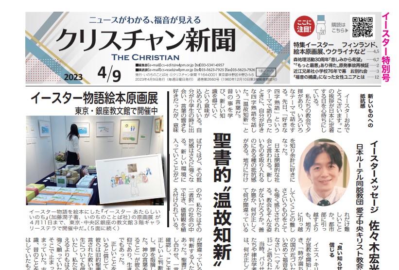 《1面》☆【イースターメッセージ】聖書的〝温故知新〟の生き方 佐々木宏光 日本ルーテル同胞教団 愛子中央キリスト教会牧師