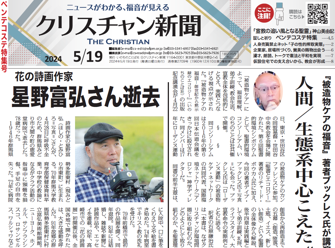 ★「クリスチャン新聞WEB版 https://クリスチャン新聞.com/csdb/」(有料)では、