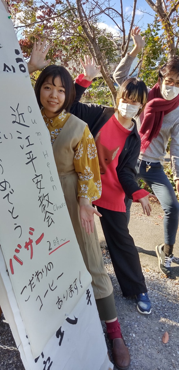 この日のために、役員会では三つの企画を立ち上げた。①50周年記念誌を編纂する。②教会員伊藤愛さんの個展を開催する。③ミニバザーをする。中でも問題は、ミニバザー! かつての隆盛期には、教会の前庭にテントをはり、うどんやヤキソバを作り、家庭で使わないものを持ち寄って、地域の人も訪れ、それはそれは楽しいバザーが展開したものだった。ところが、現状は教会員の中から、「もうしんどい」「バザーをやるエネルギーがない」との率直な意見が出された。そこで一計を案じた。自分たちでやるのではなく、京都で学ぶ神学生・青年たちに来てもらって、やってもらおう! と。