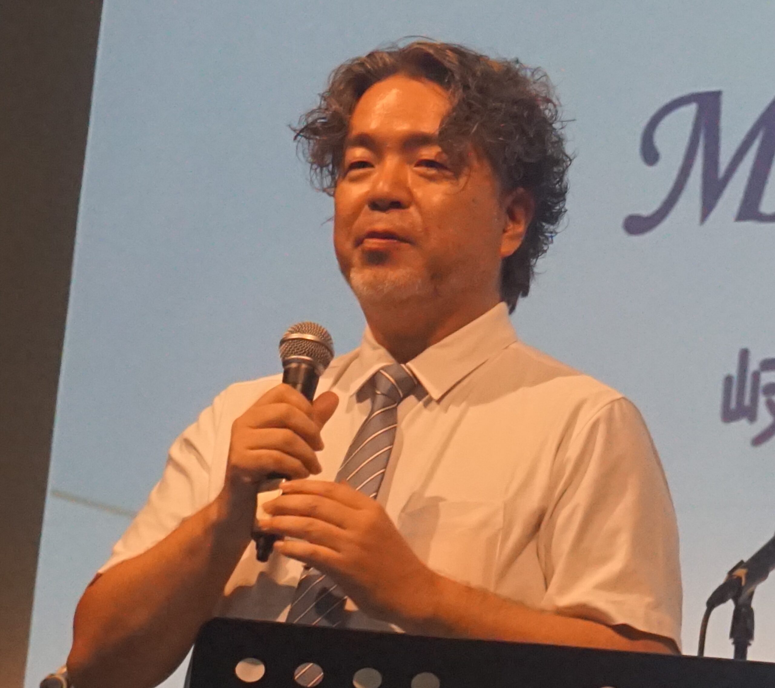 ゴスフェス岐阜実行委員長の川村真示氏(同盟福音・岐阜キリスト教会牧師)がメッセージ。川の多い岐阜で形成された堤防や「輪中」文化に触れて、3つのクワイアが協力したゴスフェス岐阜のエピソードや、国内外のキリスト教会間に必要とされる、和解と一致について勧め、日本伝道会議に期待した。