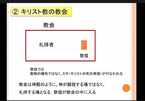 「神の顕現」(神はいかに自らをあらわすか)、「神を礼拝」(神を礼拝することはいかにして可能となるか)、という二つの問いで地中海世界の神殿礼拝文化をたどった。「キリスト教は、神殿と動物の犠牲という宗教形態の基本枠組みを背景にしつつ、神の犠牲と人の側の信仰によって、普遍化をはかった、、、、、