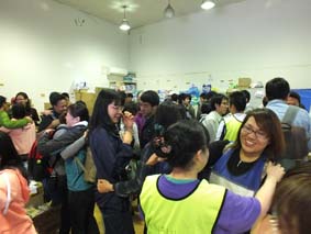 最後に、中村牧師が祈ったのち、参加者で初めて会う支援者同士でハグし合い、各自支援先への準備を始めた。看護師不足の病院への看護師派遣、近隣や関係のある人の家屋の整備、清掃、益城町や阿蘇市の活動支援。支援や要望を聞き取るためにはチラシや依頼書を持参した。