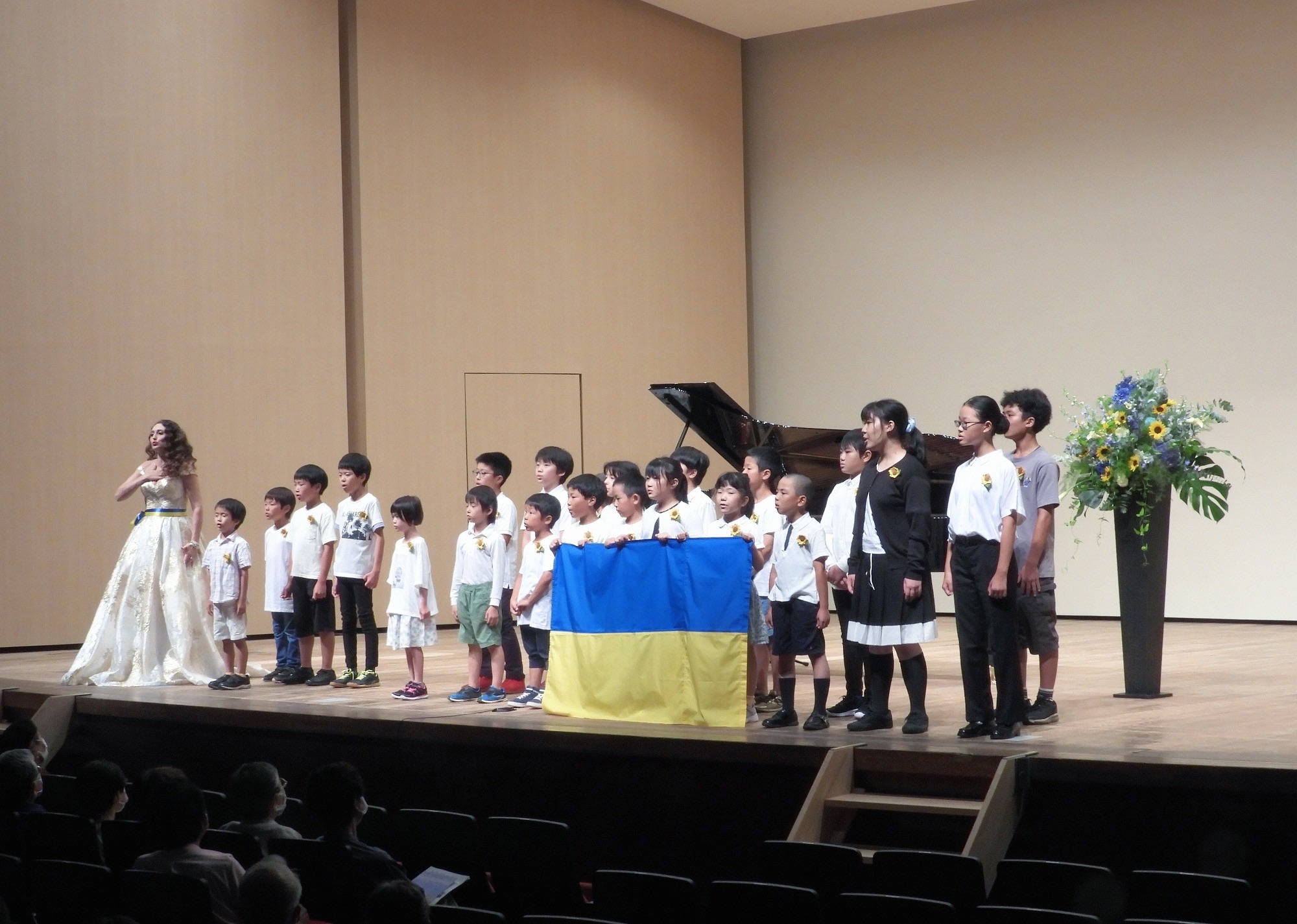 土浦ユネスコ協会主催による〝ウクライナ人道支援チャリティーコンサート〟「オクサーナ・ステパニュック―愛と平和の祈り―」が8月28日、茨城県土浦市のクラフトシビックホール土浦を会場に開催された。オープニングでは、フリースクール森の学園の初等部、中等部の生徒もステージに上がった。