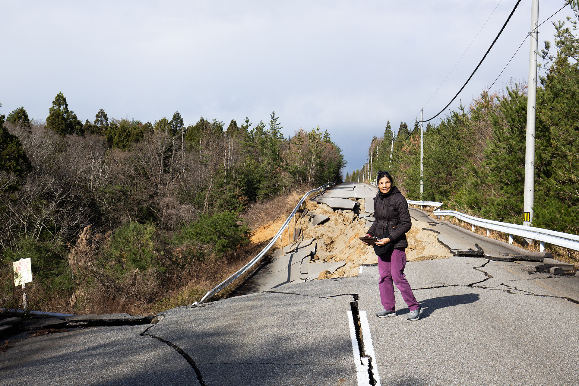 酒井さんは「山側の道路が崩落し、寸断されていた。海岸沿いの岩盤がしっかりした道がようやく通れ、教会までたどり着いた。教会堂は無事だったものの、門前町周辺では全倒壊の家屋が見られ、亡くなった人もいる。中学校が避難場所となった。教会の斜め向かいの家が倒壊して、宣教師夫妻が親しくしている家族の一人が亡くなった。北側の輪島市街地への道は寸断されていけなかったので穴水町から七尾市を通って戻った。被災地どうしの通行ができない状況となっていた」と話す。