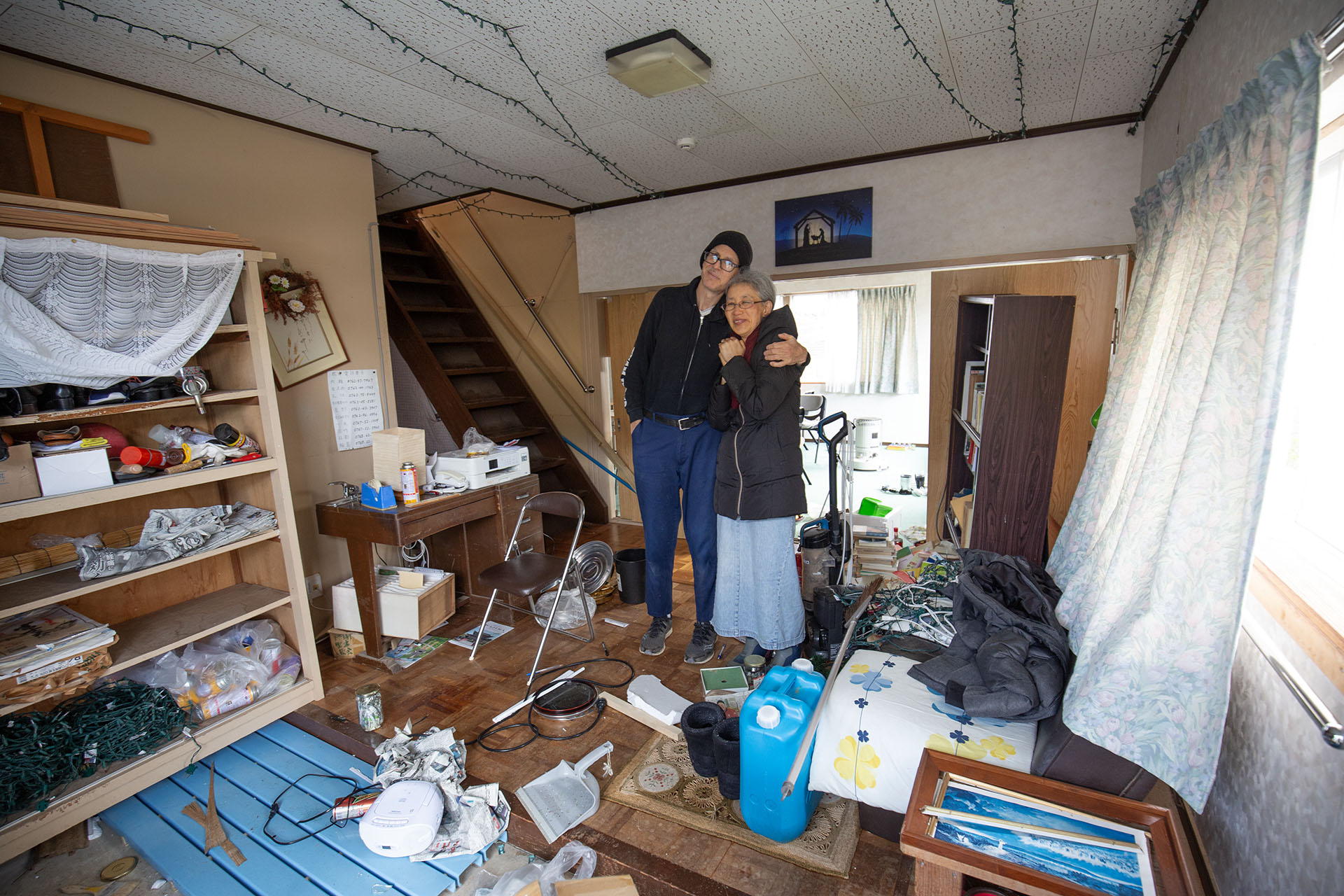 輪島市の門前聖書教会。会堂内部で宣教師夫妻が片付けに追われていた