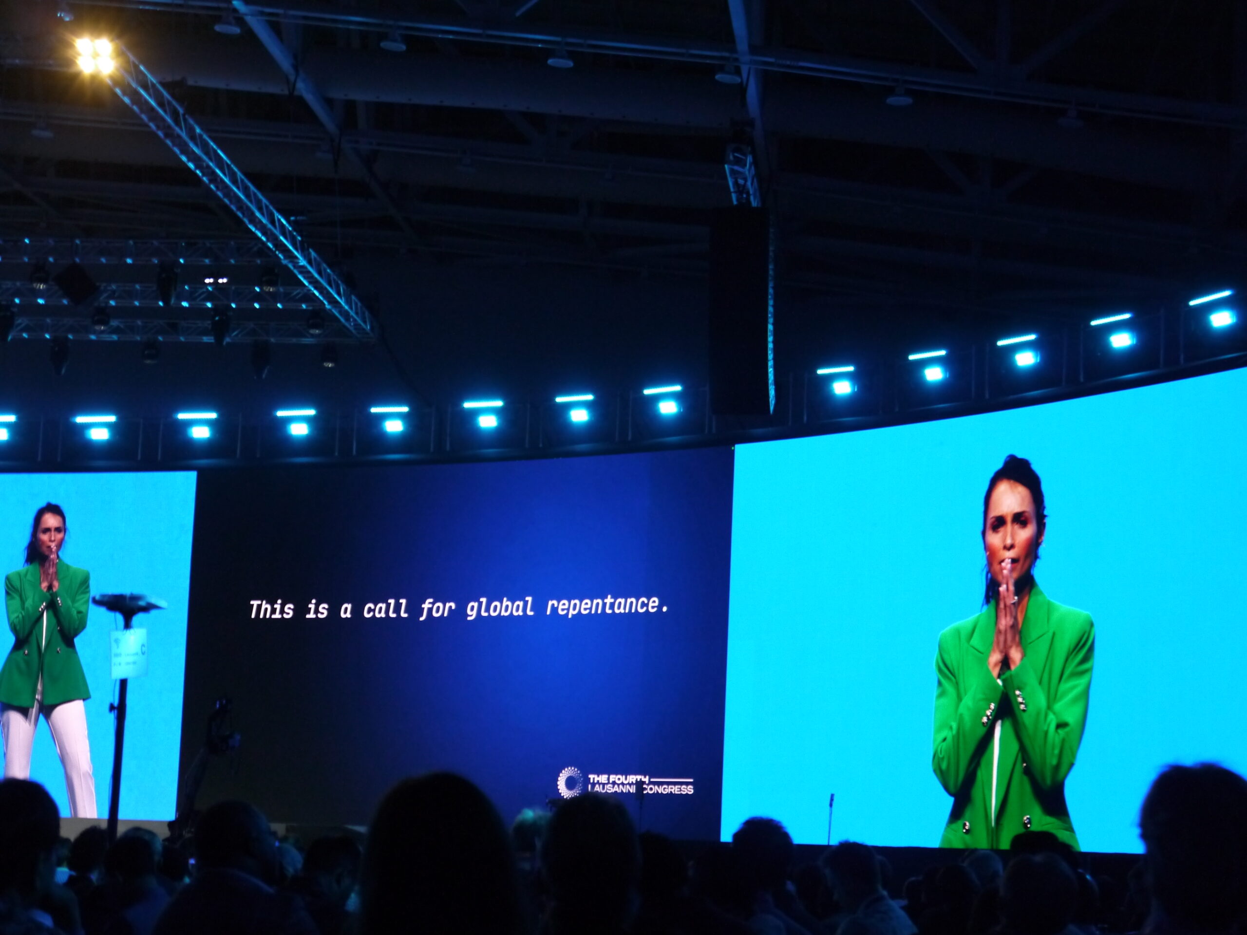 夜の主題講演「再決心―世界の教会が、信仰に基づいた言葉と行いを果たせるように招く」は、被造物ケア、正義、性のアイデンティティーといった教会の在り方を問うテーマについて、クリス・ライトさん(ローザンヌ神学作業部会前代表)が案内し、テキサス工科大学教授であるキャサリン・ヘイホーさん、ウェスタン神学校准教授のルース・パディヤ・デボーストさん、聖エベ教会牧師のヴォーン・ロバーツさんが語った