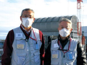 国道6号線から雑草の生い茂る一本道を抜けると、堅固なゲートに着く。その向こうには大型の建物と林立するタンク群。2022年12月3日、「東京電力福島第一原子力発電所視察・座談会」に、木田惠嗣牧師と参加した。この視察座談会は、2019年秋から福島県の太平洋側(浜通り)13市町村の住民を対象に、公募型視察として毎月行われている。2021年からは年5回、福島県内住民を対象として拡大実施されたが、新型コロナウイルスの感染拡大状況で中止となっていた。2022年に再開され、それに参加した。