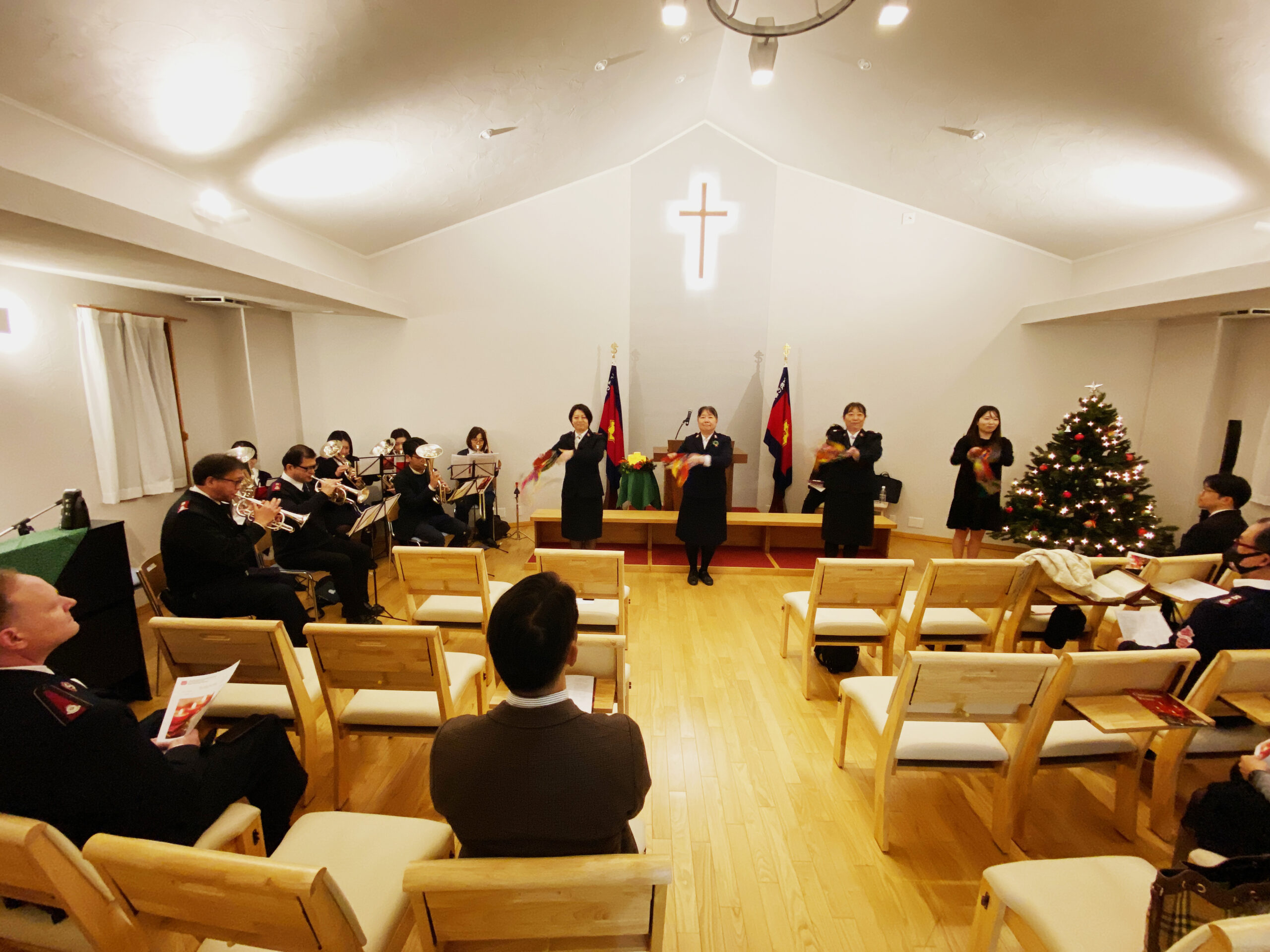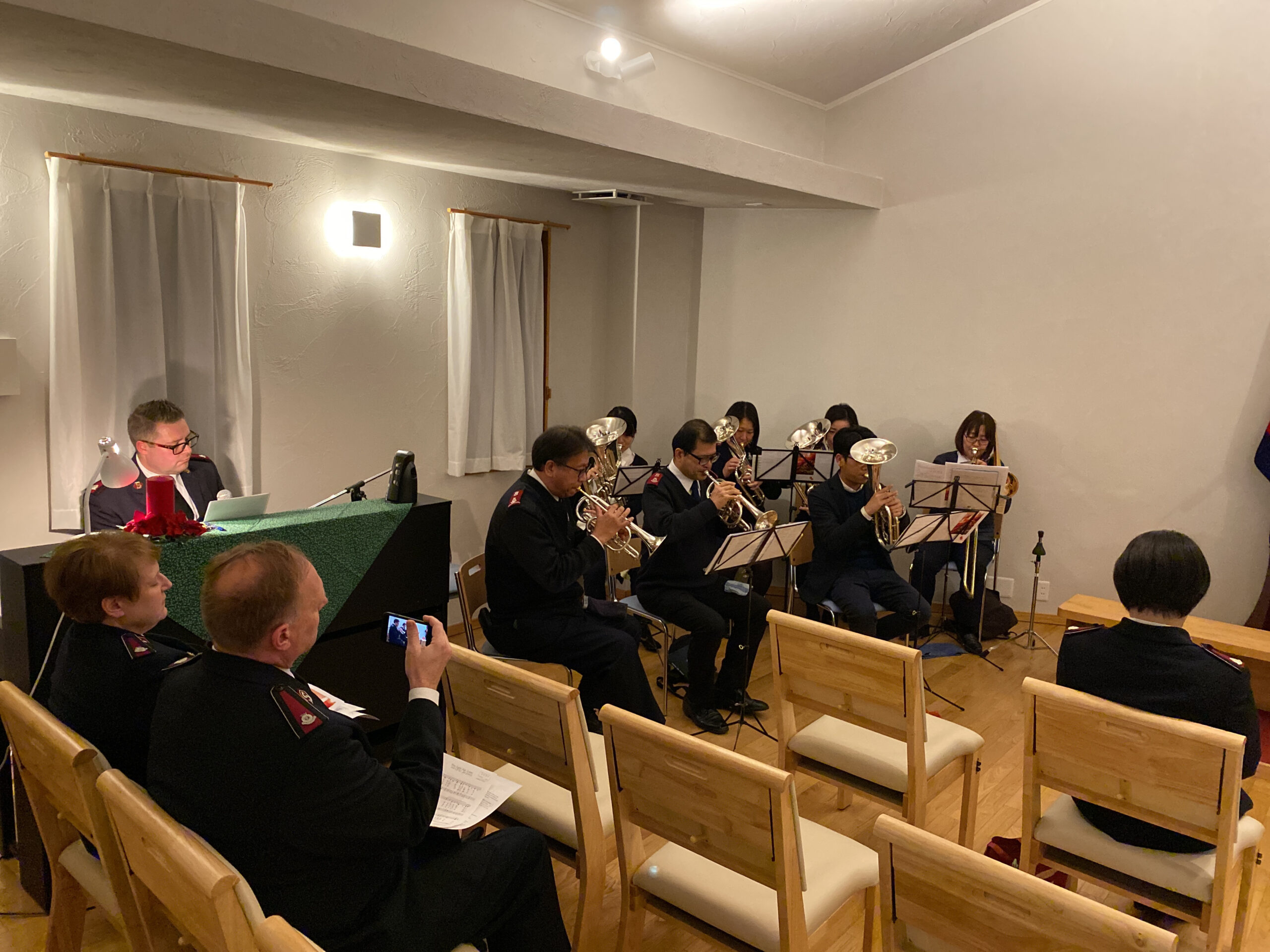 救世軍士官学校(東京都杉並区)では12月6日、「士官学校オープンクリスマス」が行われた。関係のある教会や伝道団体を招いて礼拝した。士官らによるブラスバンドアンサンブル、タンバリン、ピアノでクリスマスカロルが演奏された。士官学校長ダニエル・テンプルマン-トゥエルズ氏は「私たちみな、光について証しする人になりますように」とメッセージを語った。