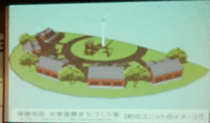 「いわきのどこかで実現できたらと思う。小型の風力や、波力、地熱などで電力も自前で確保したい。人間が人間らしく生きるやさしい住環境をそなえたい。あえて教会をたてることは目的とはしない。イエス様を信じる者たちが、そうでない人たちともいっしょに住む。その中でイエス様と共に生きる姿を見てもらいたい」と話した。