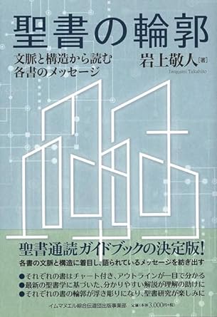 より各書巻の輪郭をとらえるのは、『聖書の輪郭 文脈と構造から読む各書のメッセージ』(岩上敬人著、インマヌエル出版局、3千300円税込、A5判)。近年の聖書学の成果を踏まえつつ、チャートやアウトラインと解説で全体構造を明解にする。それ以前に著者が勧めるのは、「まず聖書各書を何度も読んで、自分なりにアウトラインを作成して、整理できない点を洗い出したうえで本書を整理のために役立ててもらうこと」。それは著者が学んだ「帰納的聖書の学び方」に由来する。聖書記述にそった解説とともに、著者が読み取ったメッセージがある。