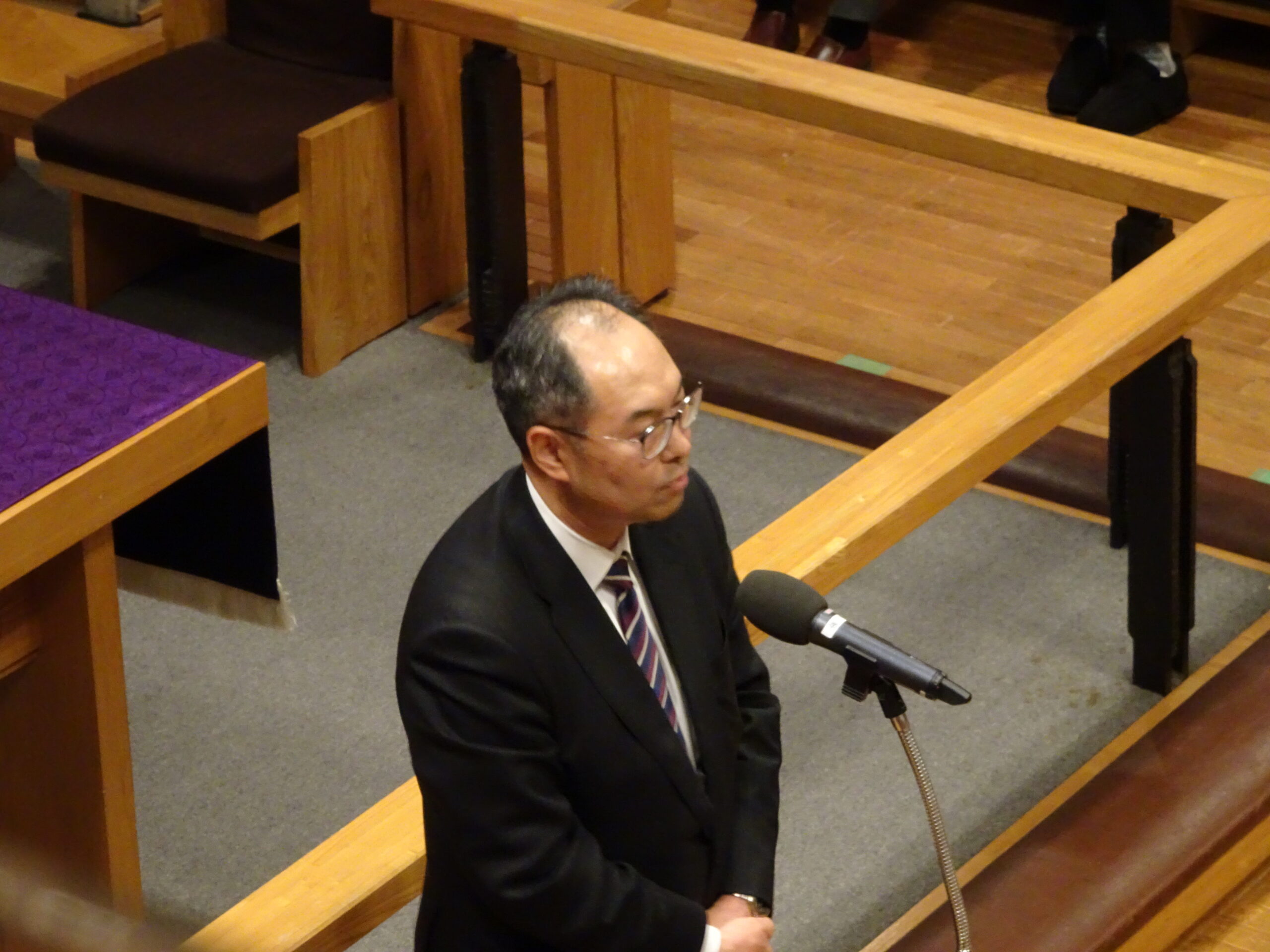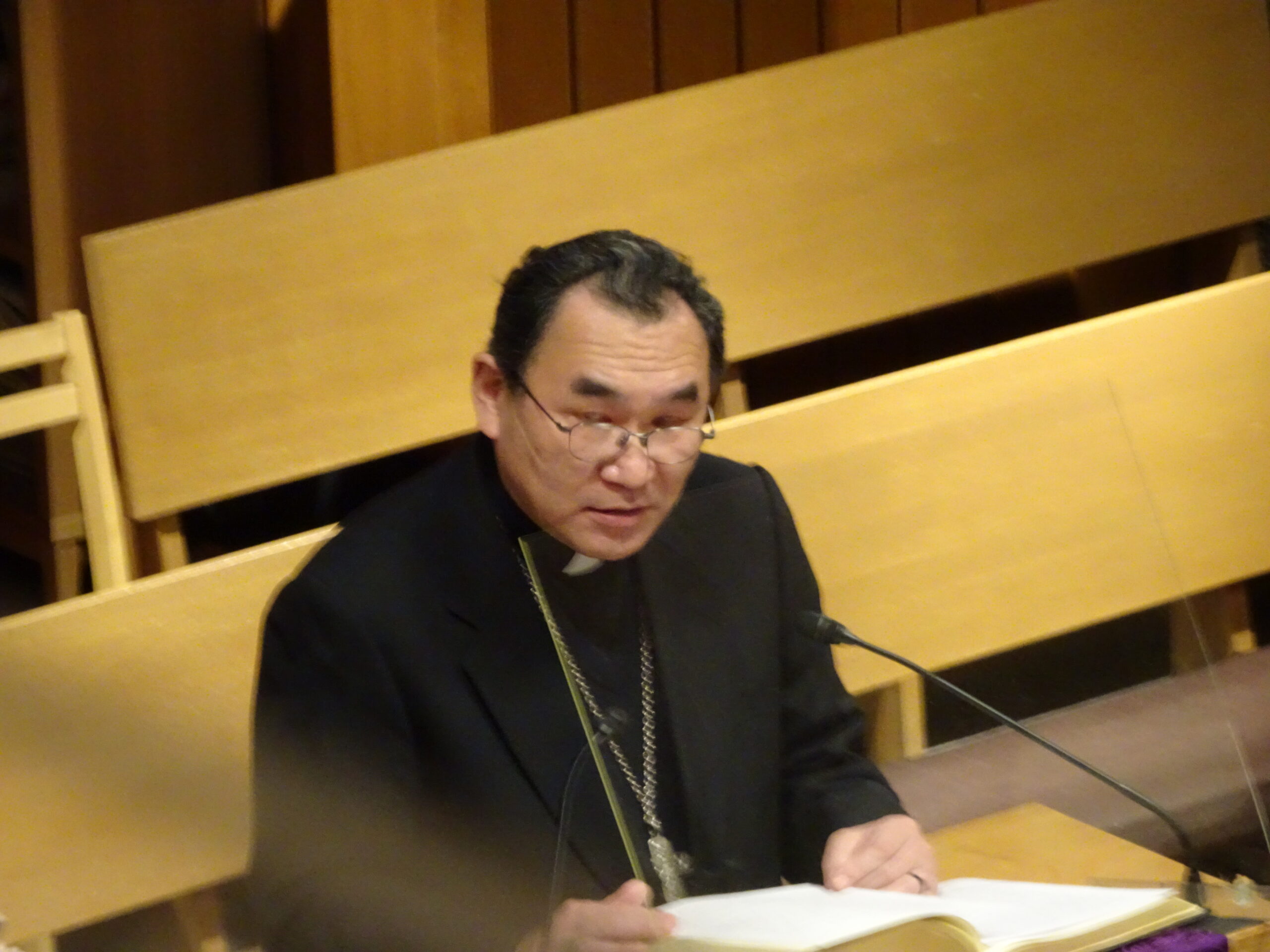 「暗闇の中に誕生した幼子こそは、神の言葉の受肉であり、神の愛といつくしみそのもの。その愛を自らの言葉と行いで人のために分かち合おうとするのが、神ご自身。私たちはその神の愛の行動力に倣いたい。神が望まれる世界の実現の道を模索することは、私たちの使命。宗教は命を生きる希望を生み出す存在であるはず。キリストは命を生かす希望の光。私たちはこの命を、互いに助け合う者となるようにと、与えられている。この世にあって、命を生かす希望の光を掲げ続ける存在でありたい。神の言葉である御子イエスが誕生したとき、暗闇に光が輝いた。イエス自身が光。私たちはその光を輝かし続けたい。輝く光であることを、自らの言葉と行いをもって証ししよう」