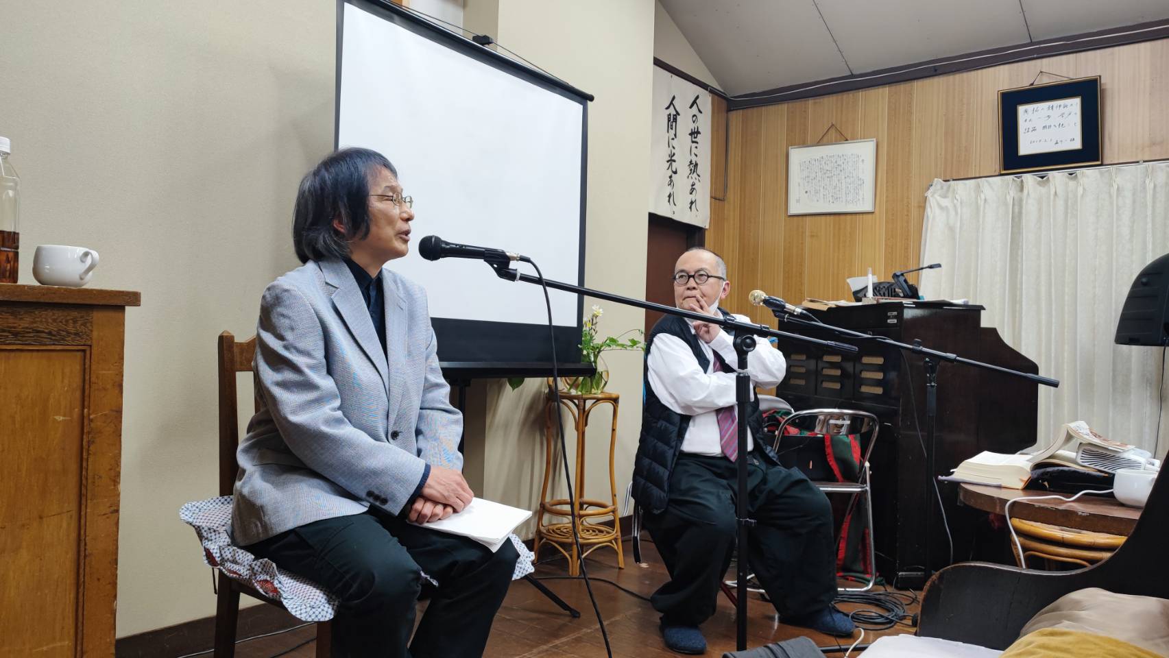 青春時代に学ぶことの意味に悩まれた石川先生が東大・京大・ドイツのチュービンゲン大学そして同志社と学問することの意味と喜びを淡々と語られたお話に参加者は世代を超えて魅了されました。また、この日の朝もたれた礼拝にも石川先生にメッセージをお願いし、講読詩編でたまたま読まれた箇所が23篇。これは石川先生の最近の訳業で「憩いのみぎわ」という表現を復活された箇所であったので、とても胸に響く礼拝となりました。(レポート・鳥井新平=日本基督教団近江平安教会牧師)