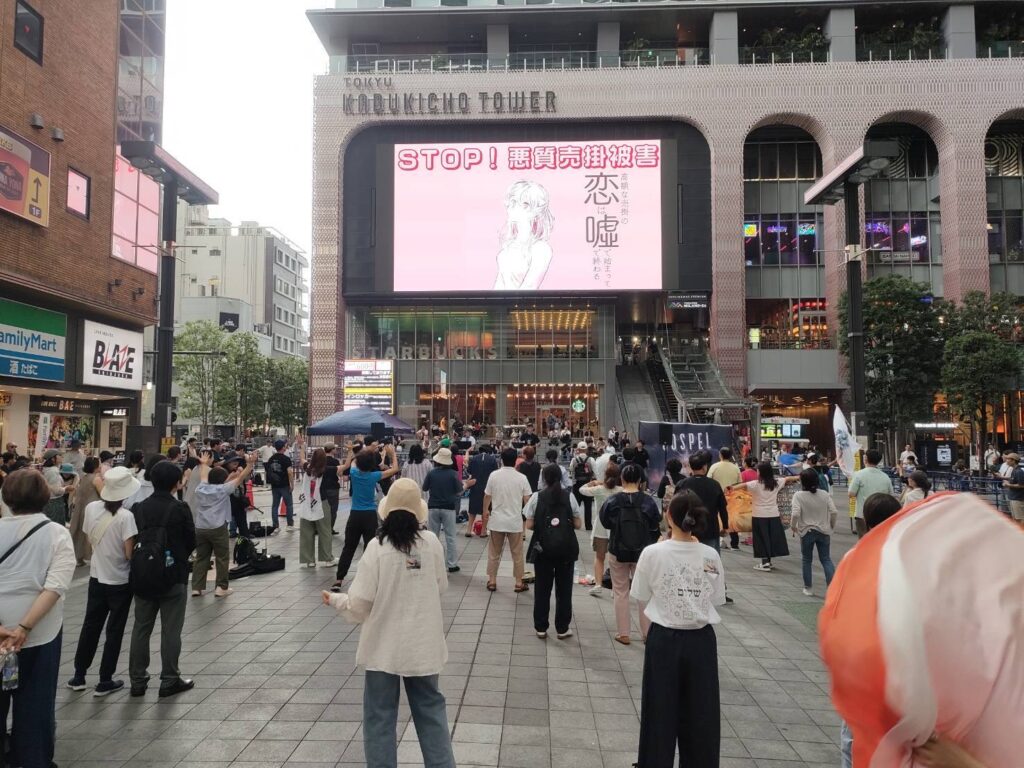 だが、「宗教的な事柄は一切禁止」だった。ところが、何と約1か月前にトー横広場でゴスペルコンサートが大々的に開催されていた。日本ではゴスペルが音楽文化として定着していたのだ。早速、ゴスペル集会として行政に申し込んだところ、すべての審査を通過し開催決定。「当日は祈りもメッセージもなく、ただ天の父に霊と真の賛美が捧げられた。福音の種はまかれ、天の水門は開かれ、聖霊の雨は降った。歌舞伎町で新しいことが始まっています」と語った。