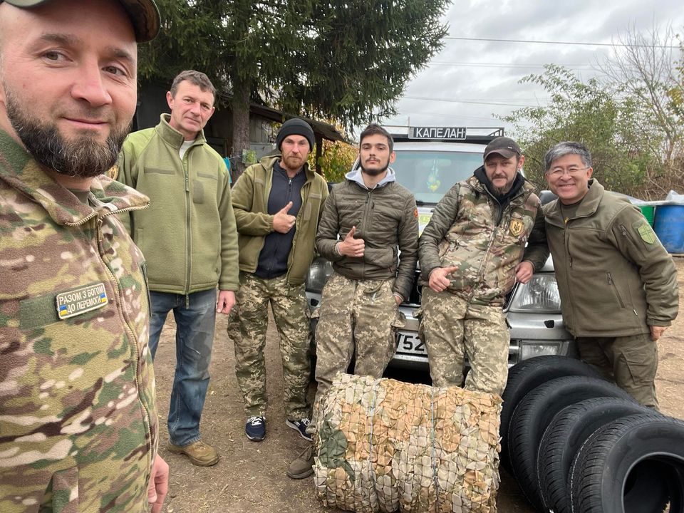 10月25日、ウクライナ兵士らに、物資と福音を届ける。右端が船越氏