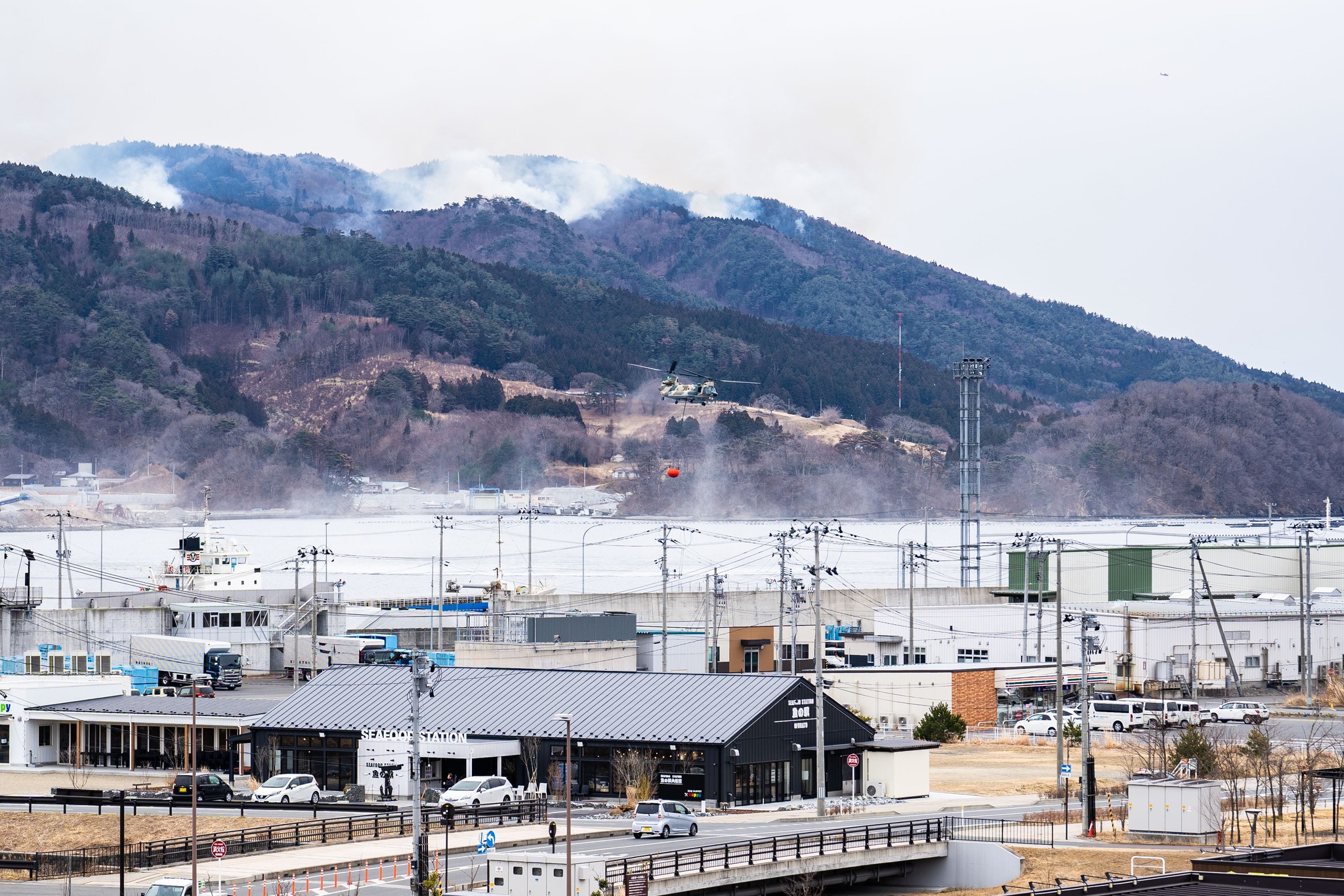 今日も山火事との決死の攻防が続いております。市内は自衛隊と消防車があふれ、煙のにおいが充満しています。赤崎方面は6か所から市内に火が迫り、甫嶺、越喜来方面からも火が回っており、かなり深刻な被害が出ています。