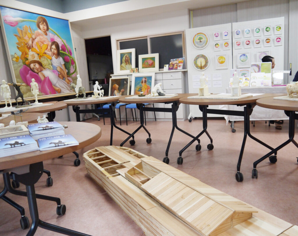 展示は服部州恵さん(テンペラ、油彩)、小泉恵一さん(彫刻)、ソウ・メイさん(水彩)が参加した。