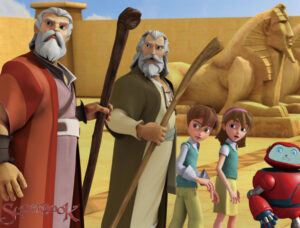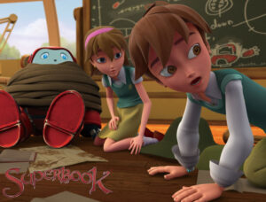 クリスとジョイ、ロボットのロビックたちに、学校生活、友だち関係、親子関係など、日常生活でさまざまなトラブルが起こります。するとクリスたちの目の前に「スーパーブック」が登場し、3人は聖書の世界にタイムスリップします。