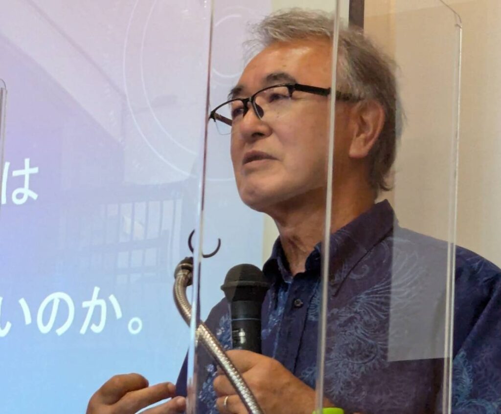 金井さんは「新たな戦前にしないために」と題して、沖縄の離島での自衛隊軍事配備の現状や、ご自身が船長となって運航する抵抗船「不屈」の活動、大浦湾辺野古での基地建設抵抗の様子を具体的にお話ししてくださいました。
