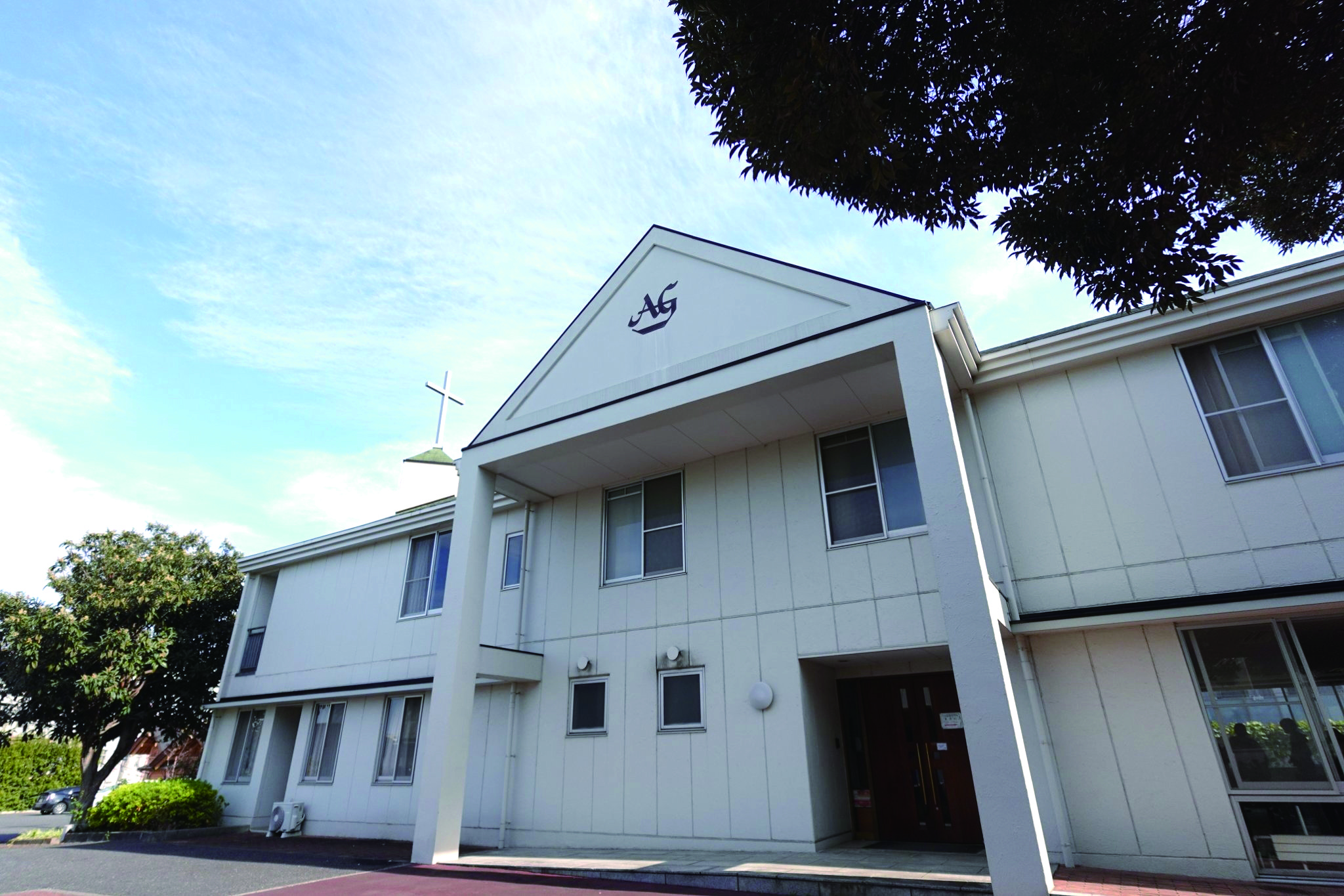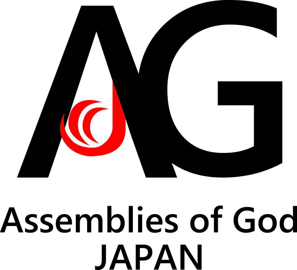 創立70周年となる2019年に発表された教団のロゴマーク。「AG」はAssemblies of God。赤色の「J」は、主イエス(Jesus)の福音が、聖霊の炎に燃やされて日本(Japan)中に、そして世界に広がっていく様子を表したもの。