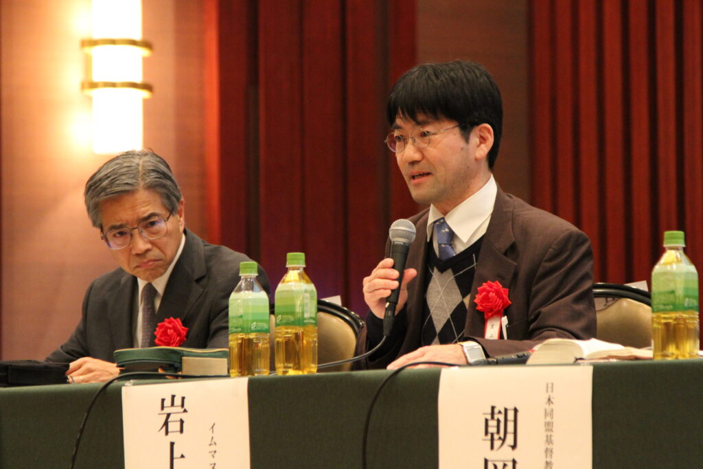 続いて、牧師の霊的形成の視点から朝岡勝氏(同盟基督・徳丸町キリスト教会牧師)が応答された。阪神・淡路大震災と東日本大震災を通して考えさせられていることは、「ジレンマを抱えること」と「誠実であること」の大切さであった。「伝道か奉仕か」、「それは牧師のすることか」、「所詮お前はよそ者ではないか」、「結局は布教のため?」、「それで何が残ったのか」。そのような声を耳にしてきたが、それら以上に葛藤をもたらしたのは、自分の内側からの声であった。そこで問われているのは、自己陶酔や自己憐憫を越えて、神と隣人に対して誠実であろうとし続けることではないか。霊的形成(霊的な深まり)の途とは、急いでスッキリさせることではなく、ジレンマを抱えながら、走りつつ、悩みつつ、祈りつつ、進んでいくことである、と述べられた。(次号につづく)