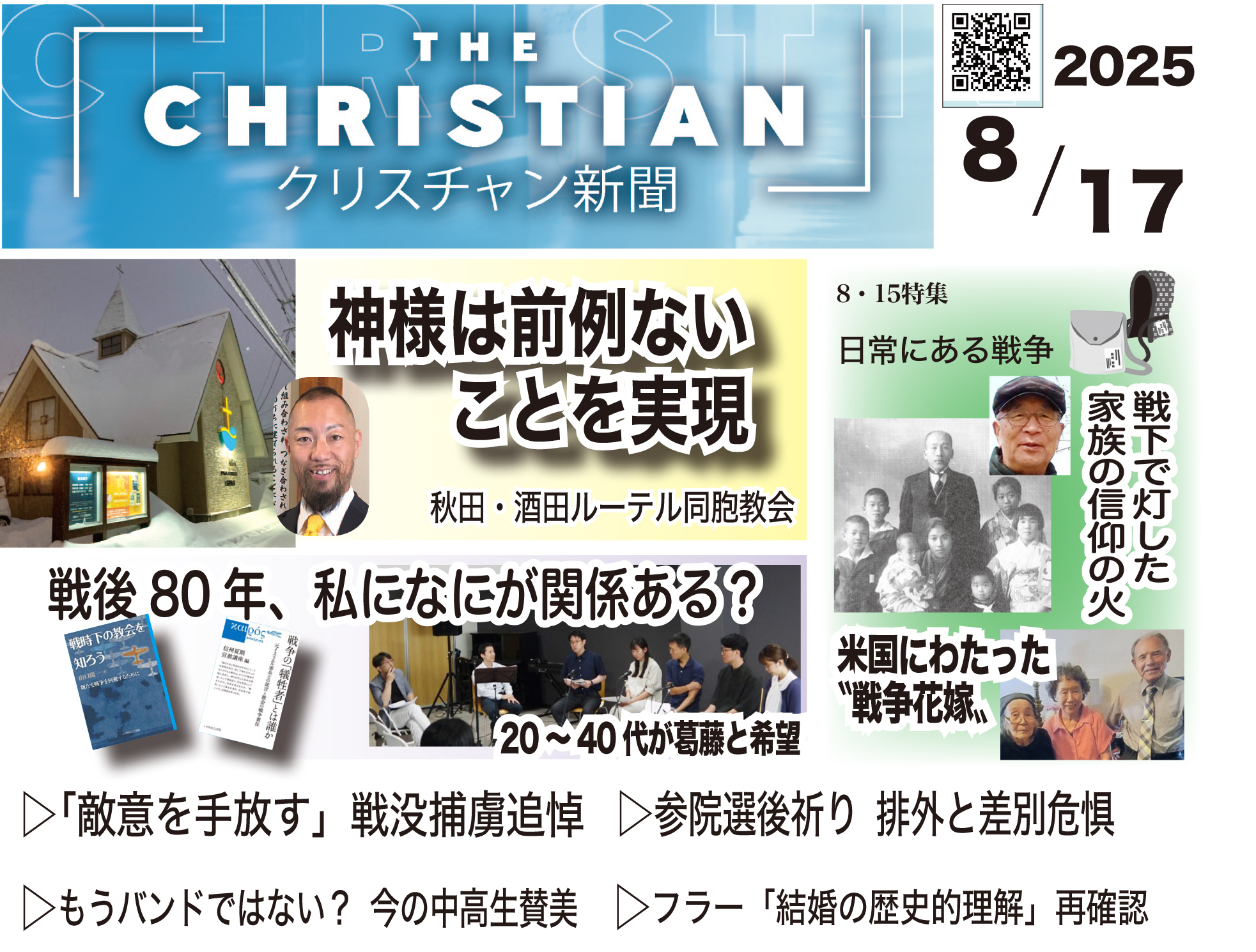 《テレビ》ライフライン8月16、17日「時代を見つめる」難波真実さん。三浦綾子記念文学館(北海道旭川市)事務局長。終戦80年企画展「時代を見つめる」を紹介し、三浦作品のテーマ『命と平和』について話を聞く。メッセージは原田憲夫牧師。