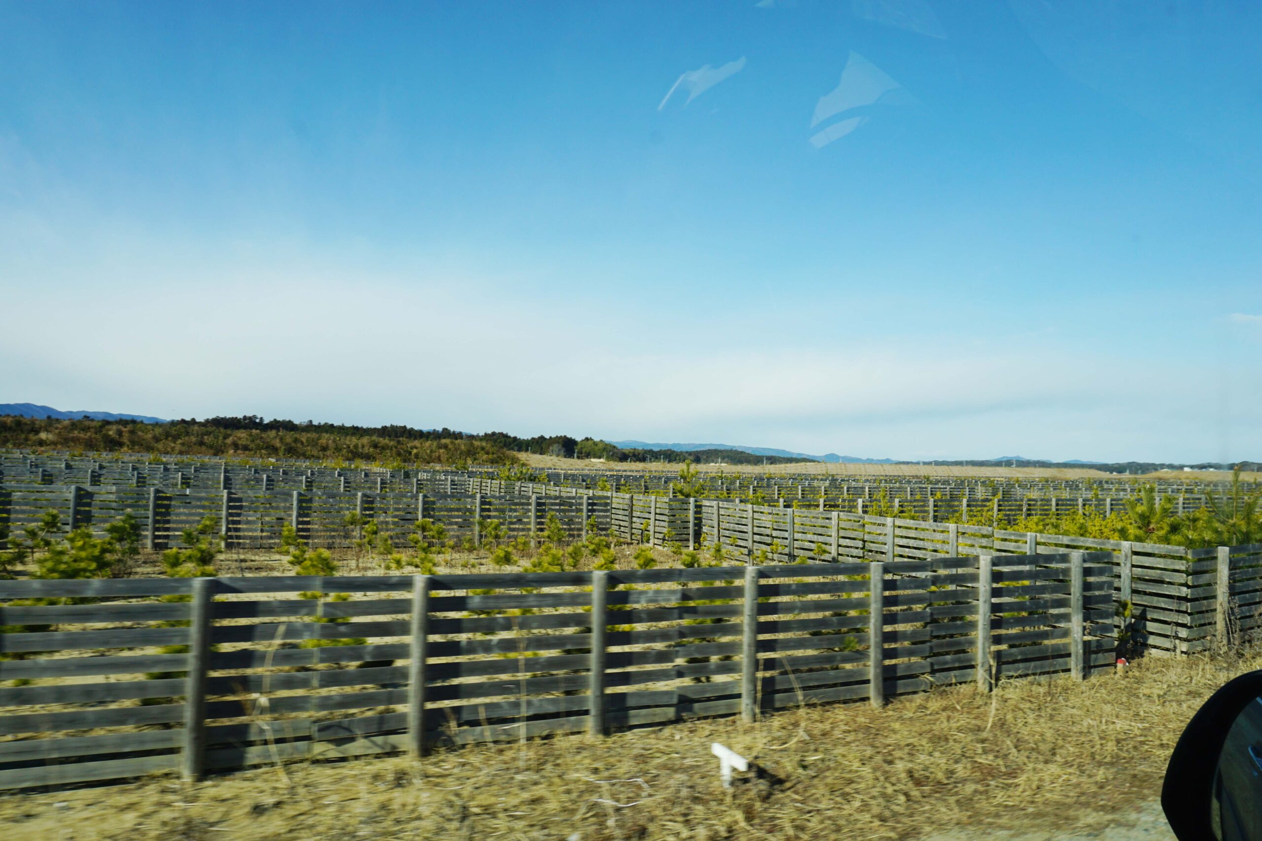 写真=南相馬市沿岸。防風林用の松の育成は半ば