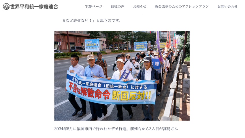 世界平和家庭連合のホームページでも「不当な解散命令」だとアピールする記事が増えている