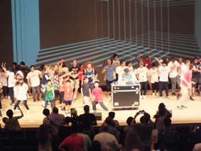 音楽、信仰の証しのトークなどがされると、「本当の喜び」を切り口に、イエス・キリストの十字架のメッセージも語った。今回は、新曲も披露。キリストによって暗闇の人生から解放される喜びを歌う歌詞を解説して導入し、皆で踊った。神を受け入れる祈りも導いて、挙手で応答する参加者もいた。