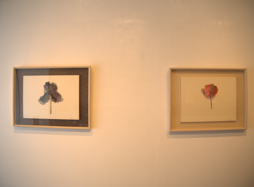 展示は、杉並区西荻北の表具額装・ギャラリー「数寄和(すきわ)」で4月10日に始まった。20日まで(13~19時)。花、冬鳥、踏み絵などをモチーフにした新作の絵画12点を、趣ある額装・表具に納め、展示している。写真では表しがたいが、至近距離でみると、繊細で多層的な色づかい、特製の和紙、額装・表具の質感が伝わってくる。
