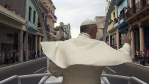 ――13年に地中海を渡る難民船が漂着する島イタリア・ランペドゥーサ島を訪問した記録を皮切りに、22年にロシアに軍事侵攻されたウクライナ、地中海のマルタ島訪問までほぼ時系列的にたどっていますね。各地での民衆への語り掛けや記者団への対応などを紡いでますが、19年11月に来日された記録は、広島での“平和のための集い”のミサ映像だけで何かを語るシーンはありませんでした。それは何か意図がありますか。