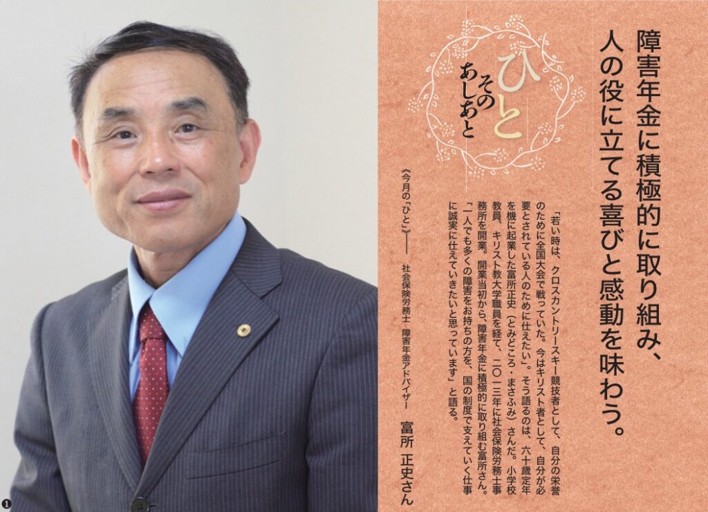福音版3月号 障害年金に積極的に取り組み、人の役に立てる喜びと感動を味わう。 社会保険労務士 障害年金アドバイザー 富所 正史さん