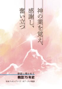 この75年史『神の業を覚え、感謝し、奮い⽴つ 御霊に導かれて〜教団75年史』が完成し、11月12日に同教団の全国総会でお披露目された。