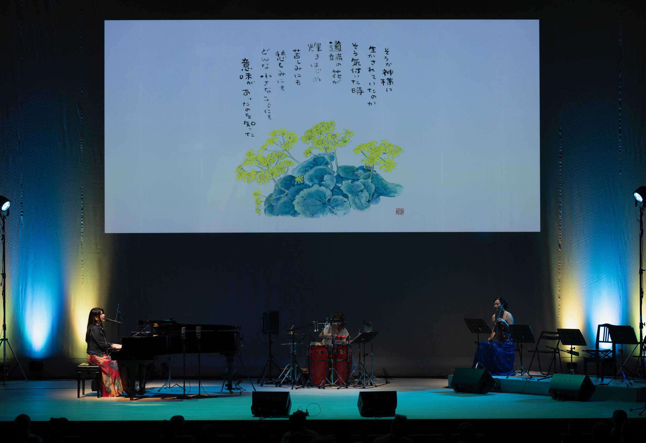 ―体調があまり良くなく、だんだん作品を作るのが大変になって、本人は意識していたわけではないけれども結果として、「生かされて」が最後になったのかな、って思うんですけれども。本当に素晴らしい詩だな、と思います。だからどうしても、それを今日ここで歌って欲しかったので、作曲をお願いしたんです。本当にわずかな時間で大変だったと思いますが、良い曲を作っていただいて感謝しています。聞けて本当によかったです。