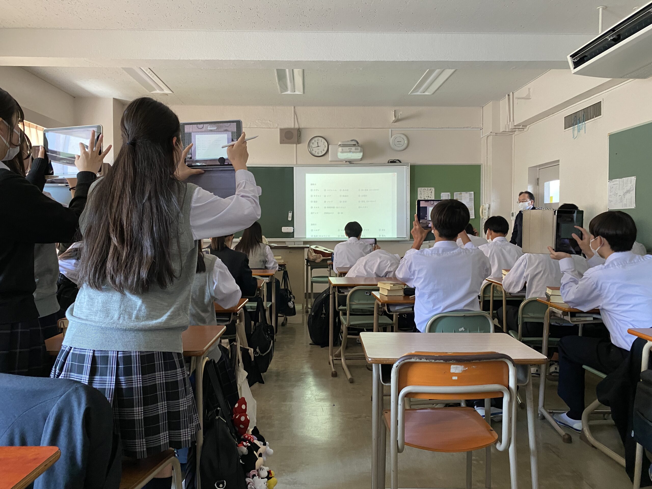 コロナ流行以前にICT教育を始動していた同校は、全生徒にタブレット端末を配布しオンラインの仕組みを作り始めるなど、感染症対策を「期せずして準備していた」。学校で通信会社と契約し、生徒の通信環境格差を解消。通信機器メーカーと共同研究し安定性も向上させた。自粛期間中も自習に任せず、オンライン授業により双方向の意思疎通を確保。教員がタブレット端末で電子教材に書き込みを入れると、生徒の端末でもリアルタイムに反映される。生徒の取り組み状況をリアルタイムで確認することもでき、行き詰まっていれば指導できる。リモート保護者会では、端末の扱いに慣れた生徒が保護者に操作を指南し家庭内コミュニケーションが活性化したなど、副産物も多い。