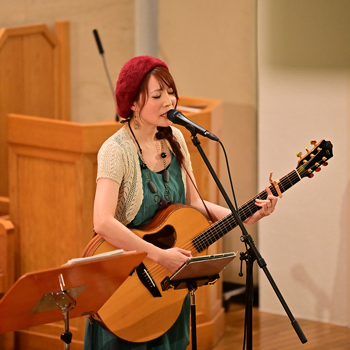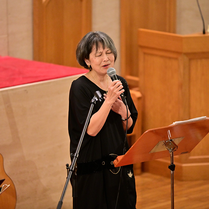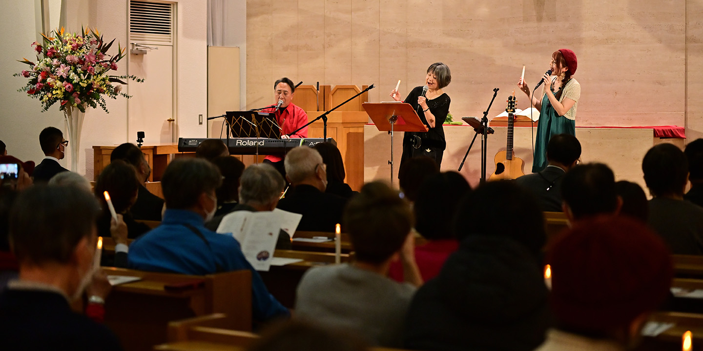 牧師・シンガーソングライターの陣内大蔵さん、音楽伝道師・教会音楽家の久米小百合さん、クリスチャンシンガーソングライターのMigiwaさんの3人が出演。クリスマスの賛美歌などを歌った。陣内さんの「空よ」、久米さんの「異邦人」など名曲の登場に会場も湧き立っていた。