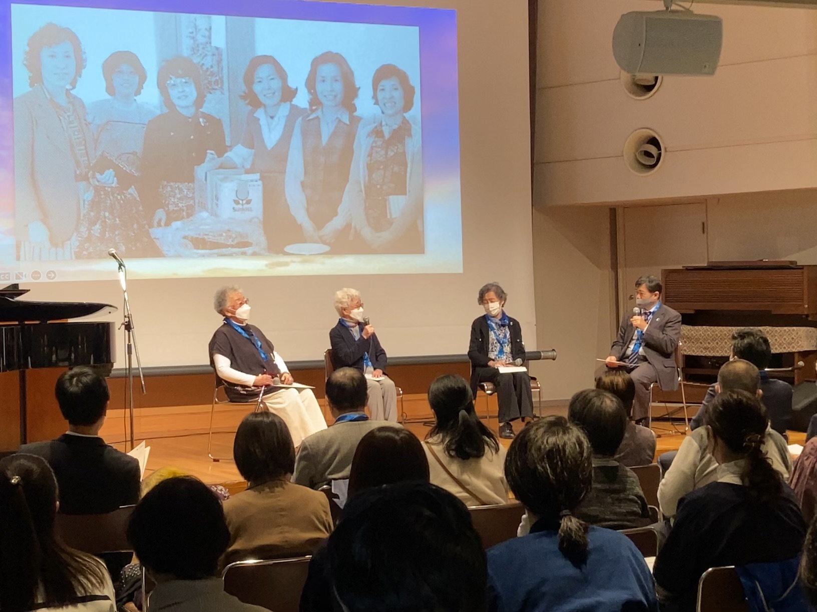 座談会では、早紀江さんが通う同盟基督・中野島キリスト教会牧師の國分広士さんの司会で、会のメンバーの斉藤眞紀子さん、牧野三恵さんが、早紀江さんとともに45年を振り返った。