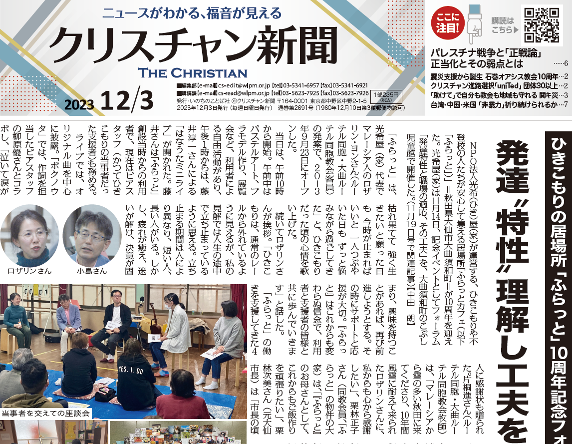 ★「クリスチャン新聞WEB版 https://クリスチャン新聞.com/csdb/」(有料)では、