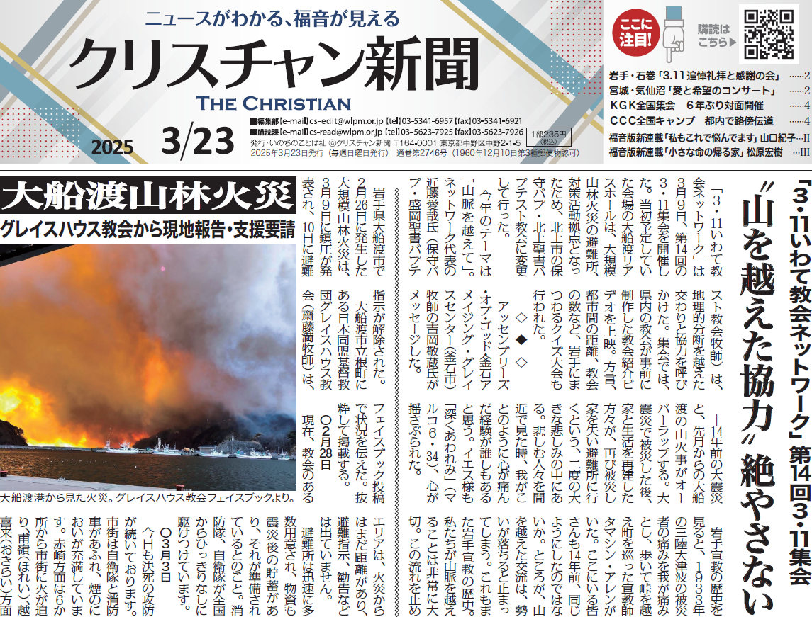★「クリスチャン新聞WEB版 https://クリスチャン新聞.com/csdb/」(有料)では、