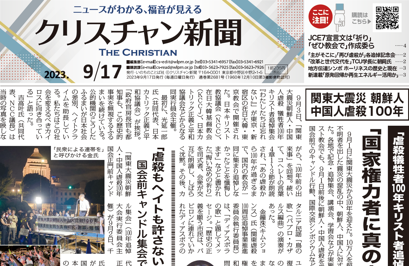 #関東大震災 #朝鮮人虐殺 #中国人虐殺 #ヘイト #ヘイトクライム #憎悪犯罪 #地方伝道 #修学院フォーラム #原子力 #原発 #TCU #東京基督教大学 #朝岡勝 #山口陽一 #JCE7 #日本伝道会議 #赤坂泉