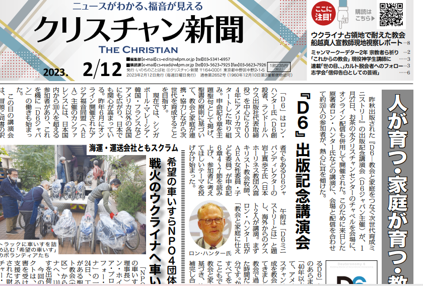 《1面》☆人が育つ・家庭が育つ・教会が育つ 『D6』出版記念講演会