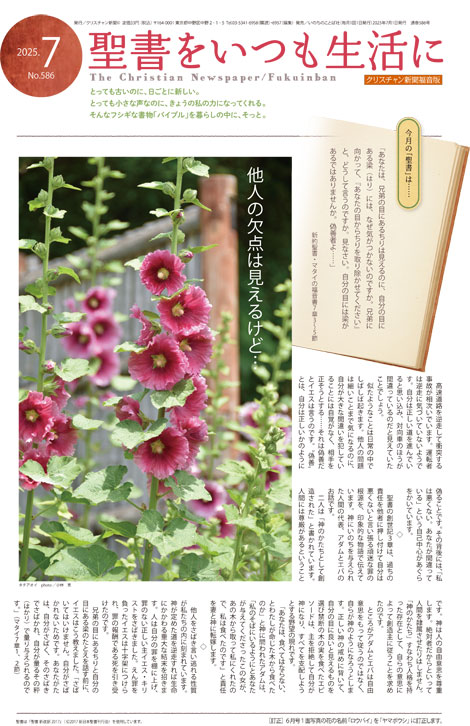 高速道路を逆走して衝突する事故が相次いでいます。運転者は逆走に気づいていないようです。自分は正しい道を進んでいると思い込み、対向車のほうが間違っているのだと見えていたことでしょう。似たようなことは日常の中でしばしば起きます。他人の問題は細いことまで気になるのに、自分が大きな間違いを犯していることには自覚がなく、相手を正そうとする……それは偽善だとイエスは言うのです。