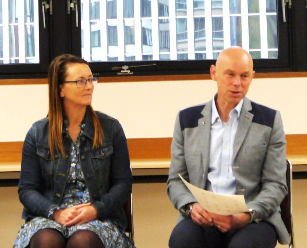 モーリー氏(右)と妻のバネッサ氏。東京・中央区の日本基督教団銀座教会で 世界100以上のワールド・ビジョンのオフィスを統括する、国際NG…